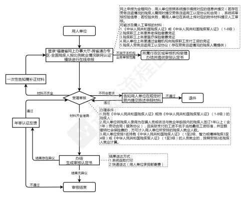 线上办理:福建省网上办事大厅--点击“我要办”--鼠标下移到部门服务--点击省残联--鼠标下移到全国残疾人按比例就业情况联网认证--点击在线办理。