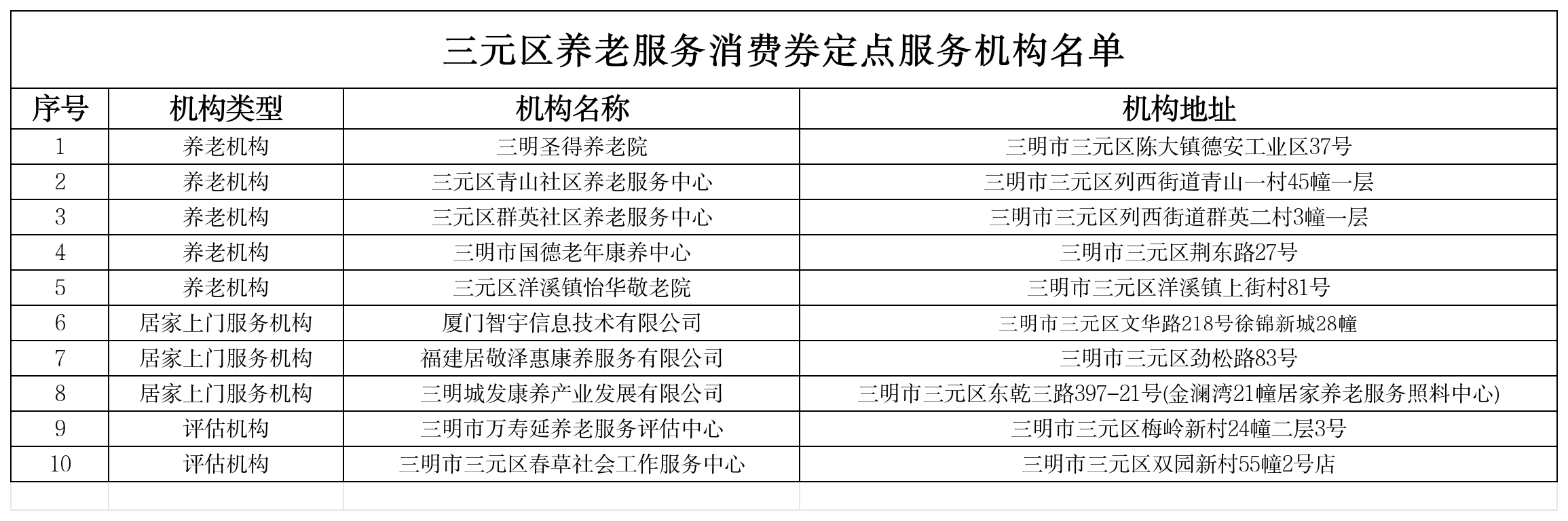 三元区民政局关于三元区养老服务消费券定点服务机构名单的公示