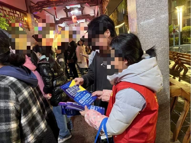 2025年2月11日下午,为了提高居民预防电信诈骗的安全意识,列西街道工作人员在青山社区开展以“预防电信诈骗、打击网络犯罪”为主题的宣传。