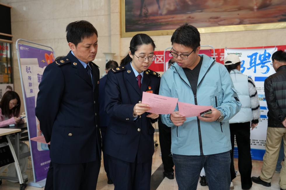 三元区税务局工作人员深入招聘会现场开展社保费合规申报宣传