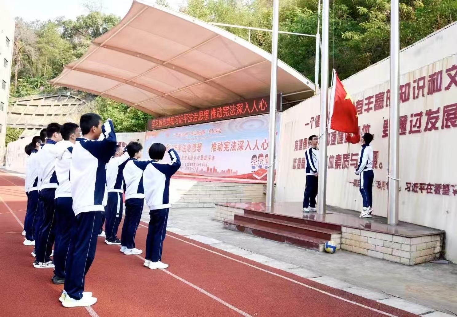 活动在庄严的升旗仪式中拉开序幕。国旗下,全体师生齐声诵读《中华人民共和国宪法》核心条文,以晨读的形式直观感受宪法的庄严与神圣,并加深对宪法精神的理解。