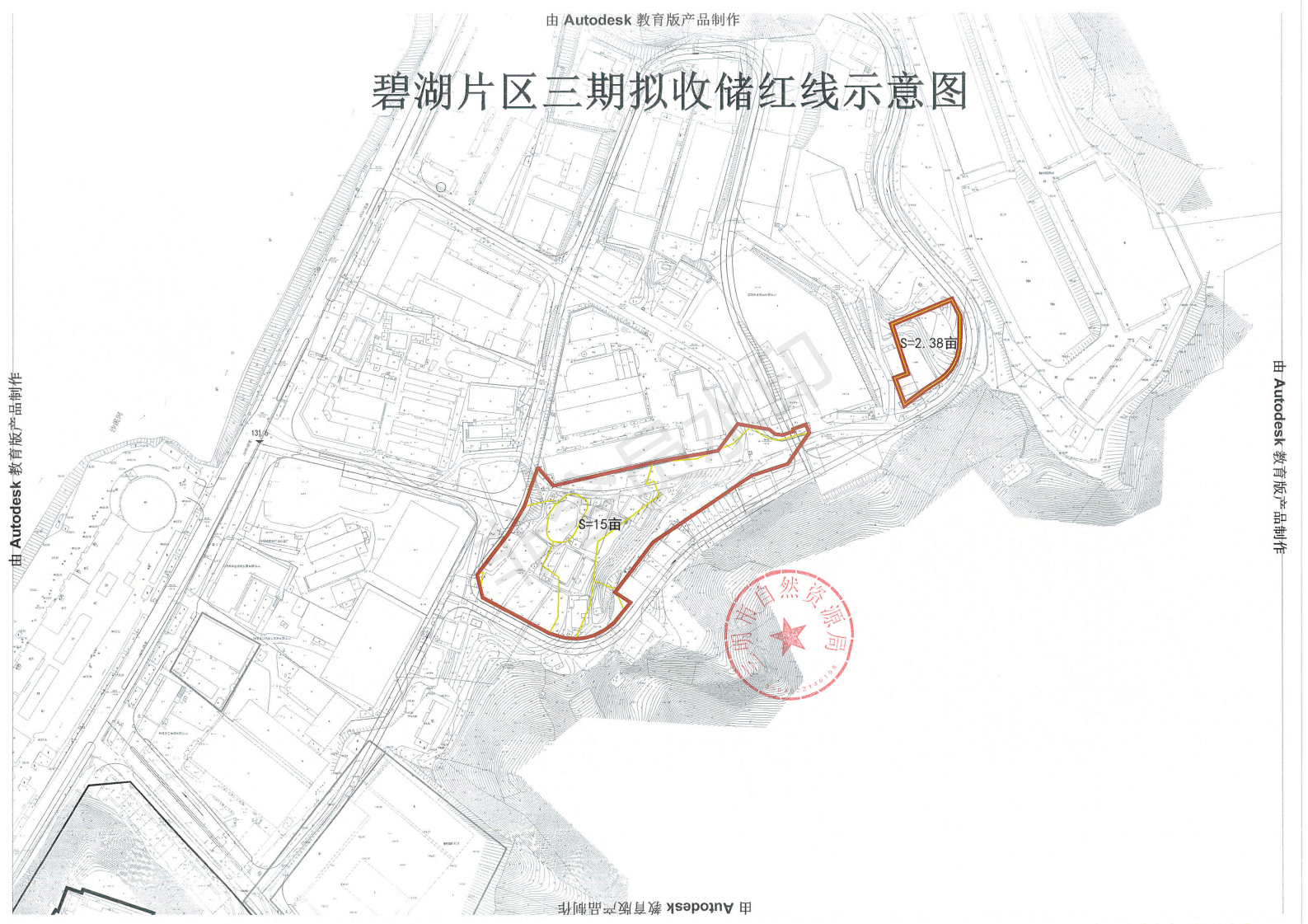 二、征收范围:碧湖三期地块征收项目红线范围内所属的房屋及不列等建筑物、附属建(构)筑物(具体详见附件碧湖三期地块拟征收红线示意图)。