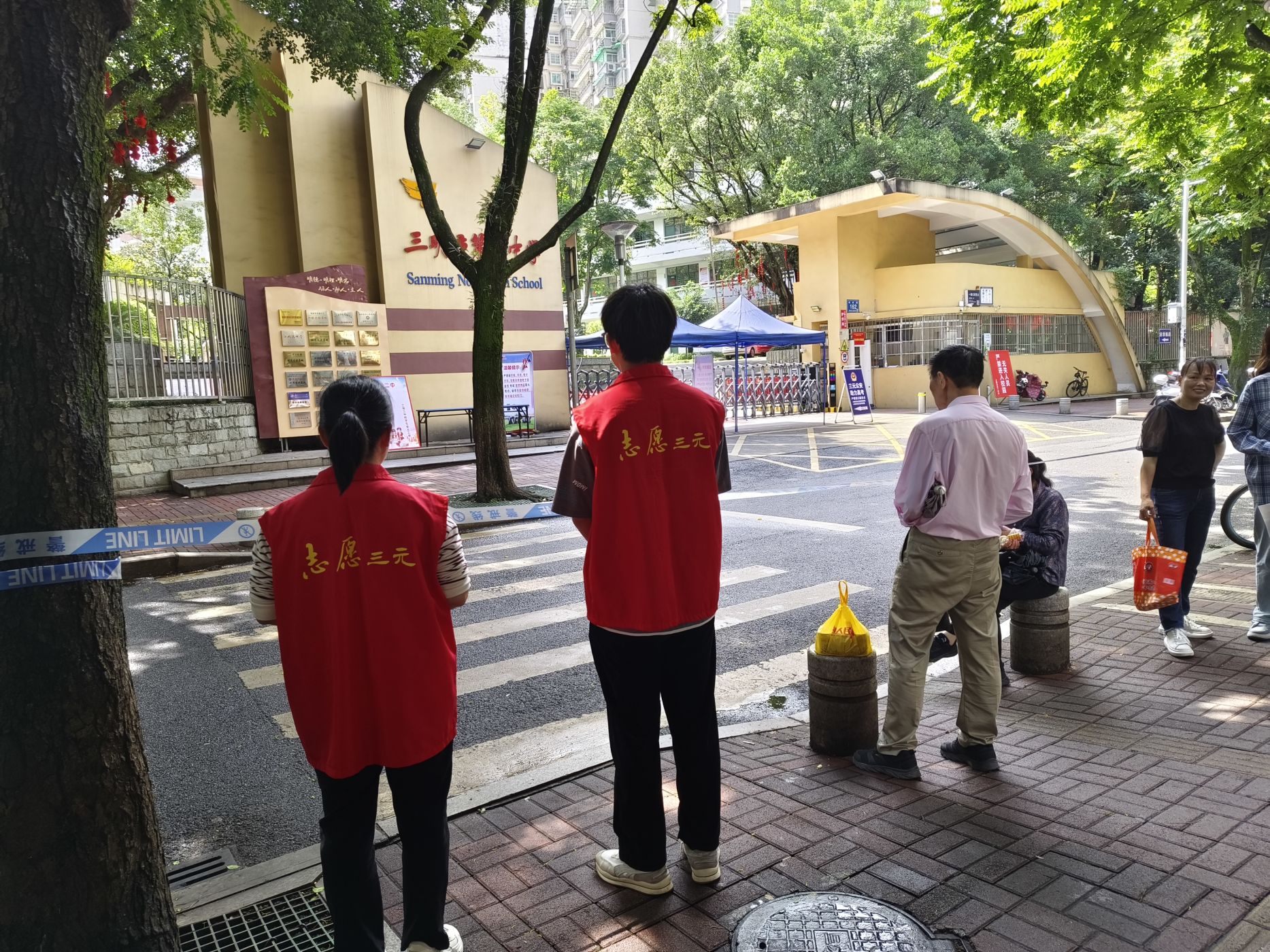 志愿者维护考场周边秩序
