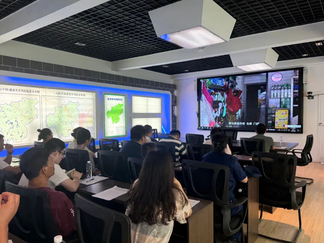 与会人员前往示范村岩前村,参观安全风险分布图,直观了解风险区域划分与标识规范,对微型消防站设施的使用进行规范学习及设备日常管护。