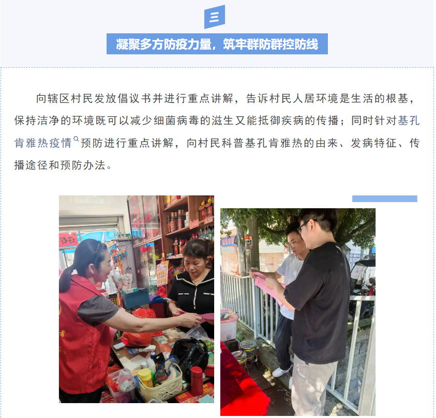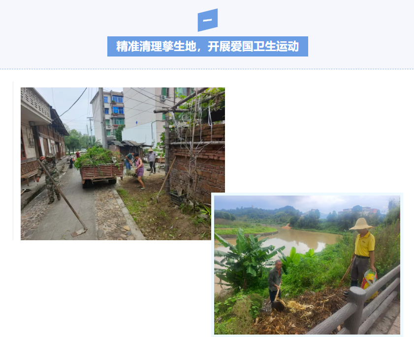 聚焦村(居)群众居住区,公共活动区等重点区域和薄弱环节,逐户走访翻盆倒罐,检查房前屋后的各类积水容器,及时清理废弃积水、生活垃圾和长期堆积的杂物,彻底清除卫生死角和蚊媒孳生环境,有效切断疾病传播途径,力求从源头上降低蚊媒密度。