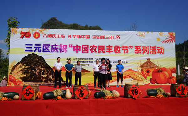 9月22日,由市文旅局、区人民政府主办,区农业农村局、区文旅局、岩前镇人民政府承办的2019年三元区“八闽庆丰收·礼赞新中国·建设新三明”中国农民丰收节活动开幕式在万寿岩国家考古遗址公园内举行。