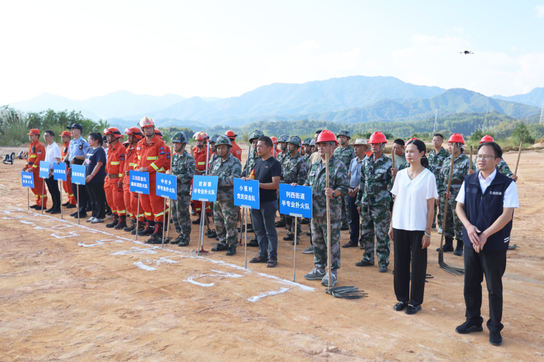 10月16日,三元区在列西街道小蕉工业园开展森林防灭火应急演练。区领导高再贤、蔡明泉,区防指成员相关单位以及各乡镇街道负责人参加现场观摩。