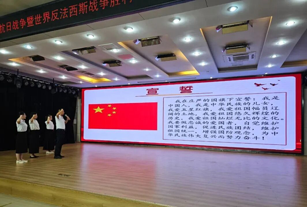 最后,所有来宾和全体师生共唱《歌唱祖国》,他们歌声嘹亮,手中挥舞着五星红旗,在激昂的歌曲中抒发爱国情怀,每一个音符都传递着身为中国人的自豪。