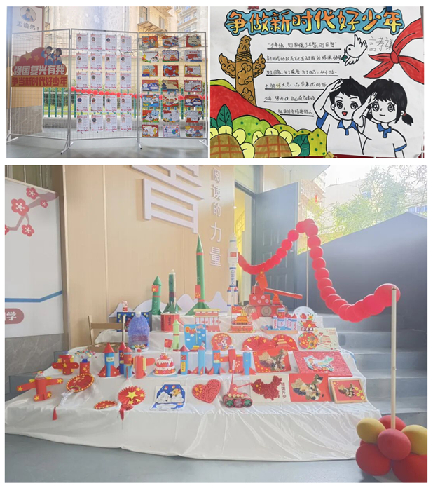 活动现场特设展示区,展示新队员“红领巾风采”、手工作品和绘画作品。作品精巧别致、色彩鲜明,每一件作品都饱含少年对生活、对祖国的热爱。展现祖国大好河山和少先队风貌,成为现场一道靓丽风景线。