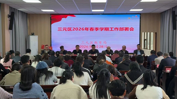 2月28日,2026 年三元区教育工作会议召开。会议深入学习贯彻全国、全省、全市教育工作会议精神,全面总结 2025 年及“十四五”期间三元区教育事业发展成效,精准分析当前教育发展面临的新形势、新挑战,系统部署 2026 年重点工作。区教育局党委书记、局长邓庆忠出席会议并讲话,教育局领导班子成员,各校(园)长、机关各股室负责人参会。