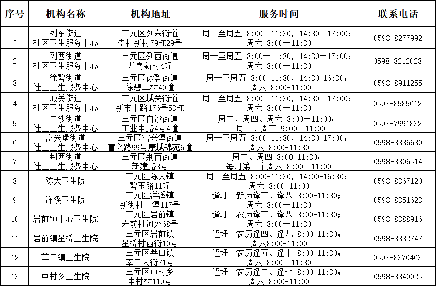 为切实提升预防接种服务便捷度,解决群众接种难题,三元区统筹辖区医疗资源,组织13家社区卫生服务中心和乡镇卫生院预防接种门诊,推出周六、圩天预防接种延时服务,进一步完善公共卫生服务体系,守护辖区群众身体健康。