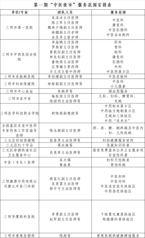 中医夜市服务范围