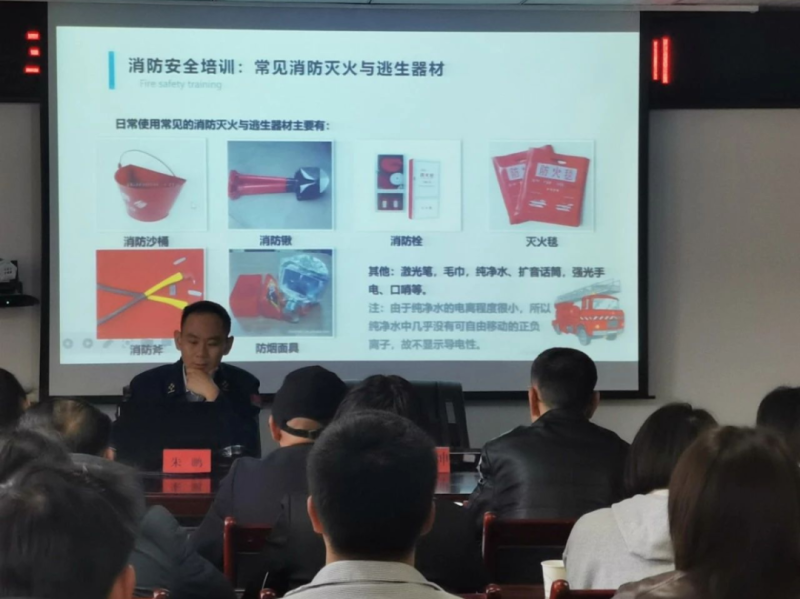 会议邀请三元区消防大队朱鹏参谋开展消防安全知识培训,围绕识别和使用消防设施设备、日常安全检查与应急疏散要点、2023年以来典型火灾事故案例风险分析、观看火灾事故警示片等内容进行培训。