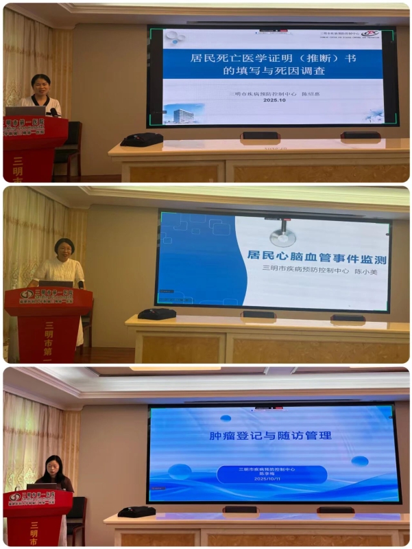 特邀三明市疾控中心地慢科陈绍惠副主任医师、陈小美副主任医师、陈李梅主管医师3位专家授课。