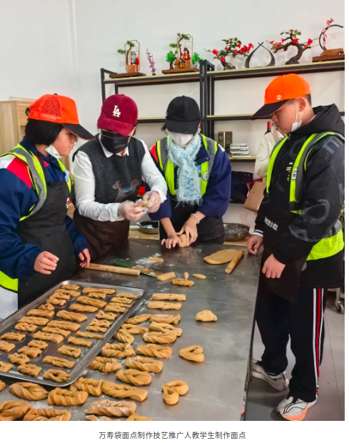在李海珠身旁,一群身着小围裙的学生学得有模有样,有的小心翼翼地揉搓面团,有的对着“O”形造型反复琢磨,偶尔举手请教,欢声笑语与面香交织在一起。