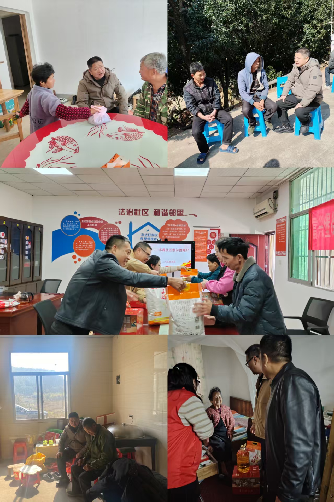 在2026年春节来临之际,区商务局开展春节走访慰问活动。为东霞社区4户低保户、富源村3户低保户送去米、油等慰问品和节日祝福,了解他们的生活情况,把党和政府的关怀和温暖送到群众身边。
